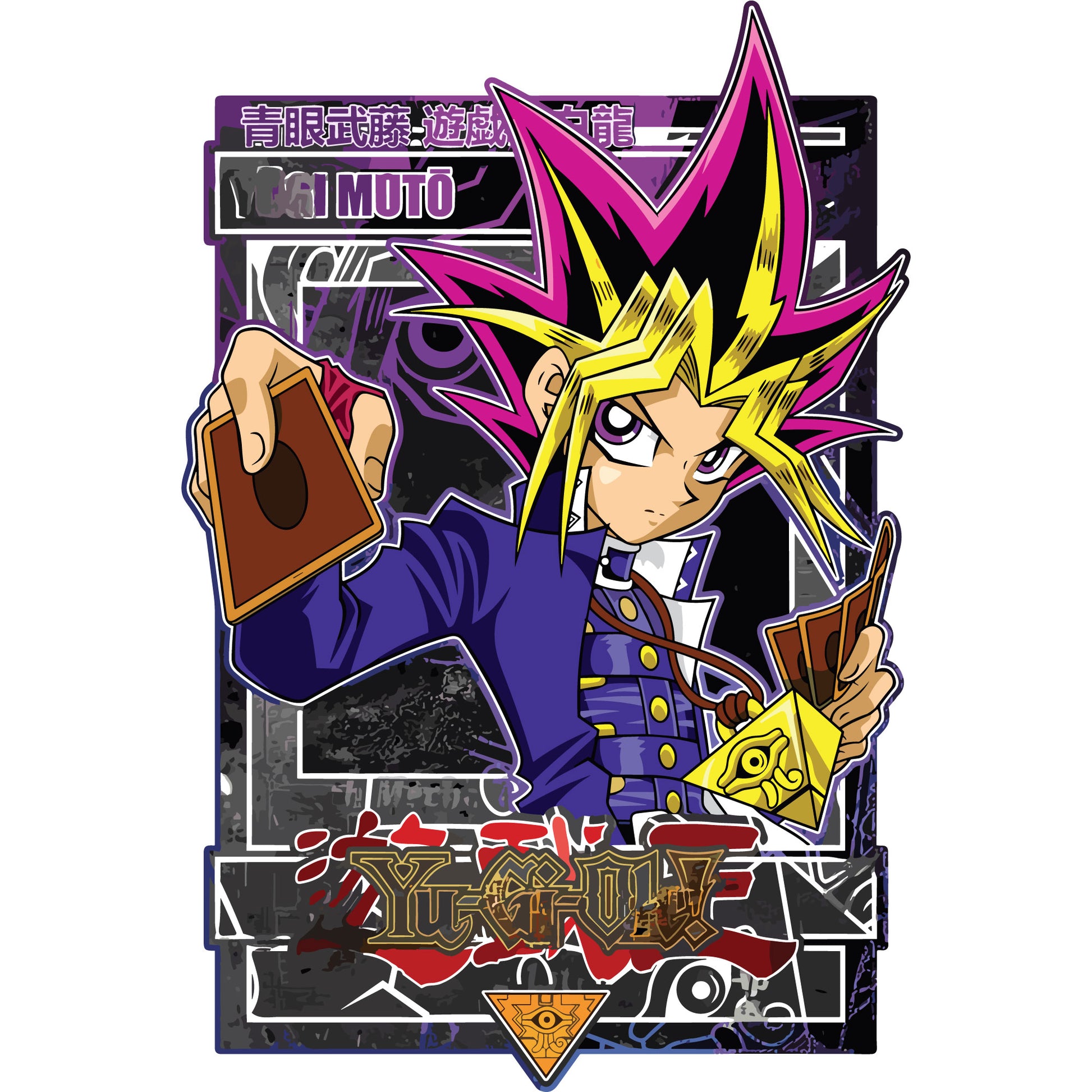 - Design: A striking illustration of Yugi, complete with his unique hairstyle, card in hand, and the iconic Millennium Puzzle. The Yu-Gi-Oh! logo appears at the bottom for a perfect nod to the series.