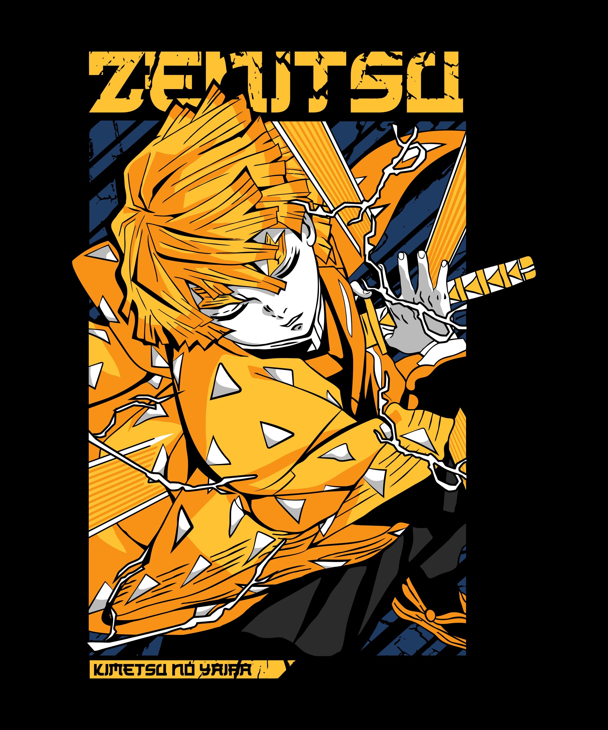 Description: Channel the intensity of Zenitsu Agatsuma’s Thunder Breathing with this electrifying design. Showcasing Zenitsu in his iconic yellow haori and his focused battle stance, the design captures the duality of his character—fearful yet immensely powerful. The bold yellow and blue accents along with dynamic lightning motifs make this a must-have for fans of Demon Slayer: Kimetsu no Yaiba.