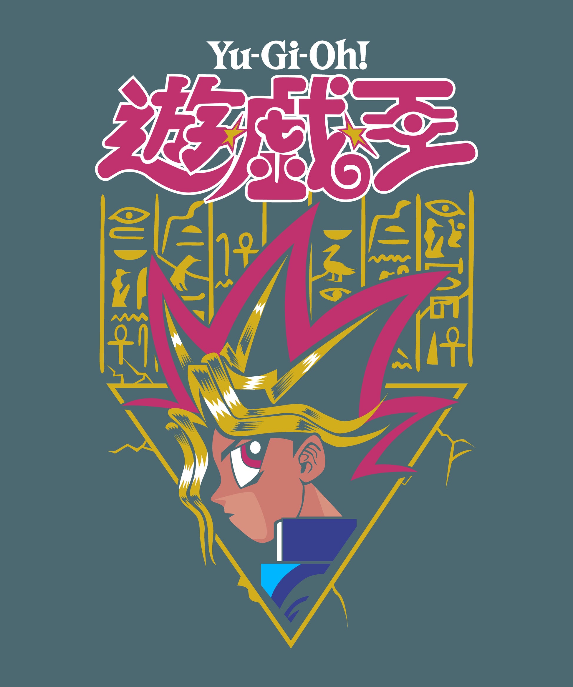 Description: Summon the power of the Pharaoh with our exclusive Yu-Gi-Oh! apparel featuring the iconic Yugi Muto. Set against a mystic Egyptian hieroglyphic backdrop, this design captures the essence of the beloved anime series, making it a must-have for fans and collectors.