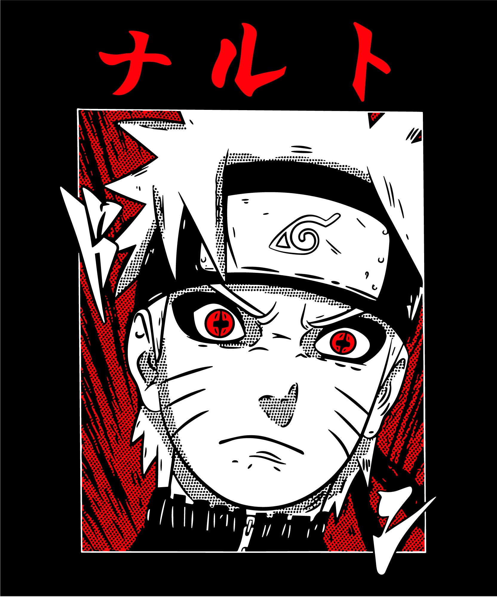 This dynamic artwork features Naruto Uzumaki, the iconic protagonist from Naruto, in an intense and dramatic pose. With his fierce, determined expression, Naruto activates his powers, radiating energy and strength. The piece highlights his powerful, awakened state, adorned with the vivid red "Kyubi" in his eyes. The background amplifies his emotion, with bursts of red to symbolize his growing power and the fierce will of the Hokage. The Japanese characters "ナルト" add an authentic touch, tying the design to its roots.