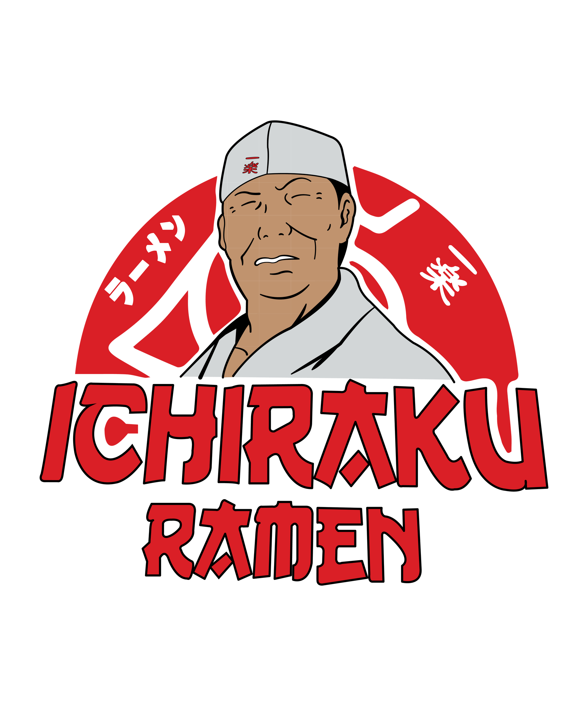 This fun and vibrant artwork features the iconic Ichiraku Ramen, the beloved ramen shop from Naruto, with the proud and smiling face of Teuchi, the owner. The design captures the essence of the shop, a comforting and familiar place for Naruto and his friends, with bold red kanji and the shop's stylized logo adding authenticity. The artwork emphasizes the cheerful spirit of Ichiraku Ramen and its place in the hearts of fans, both within the world of Naruto and beyond.