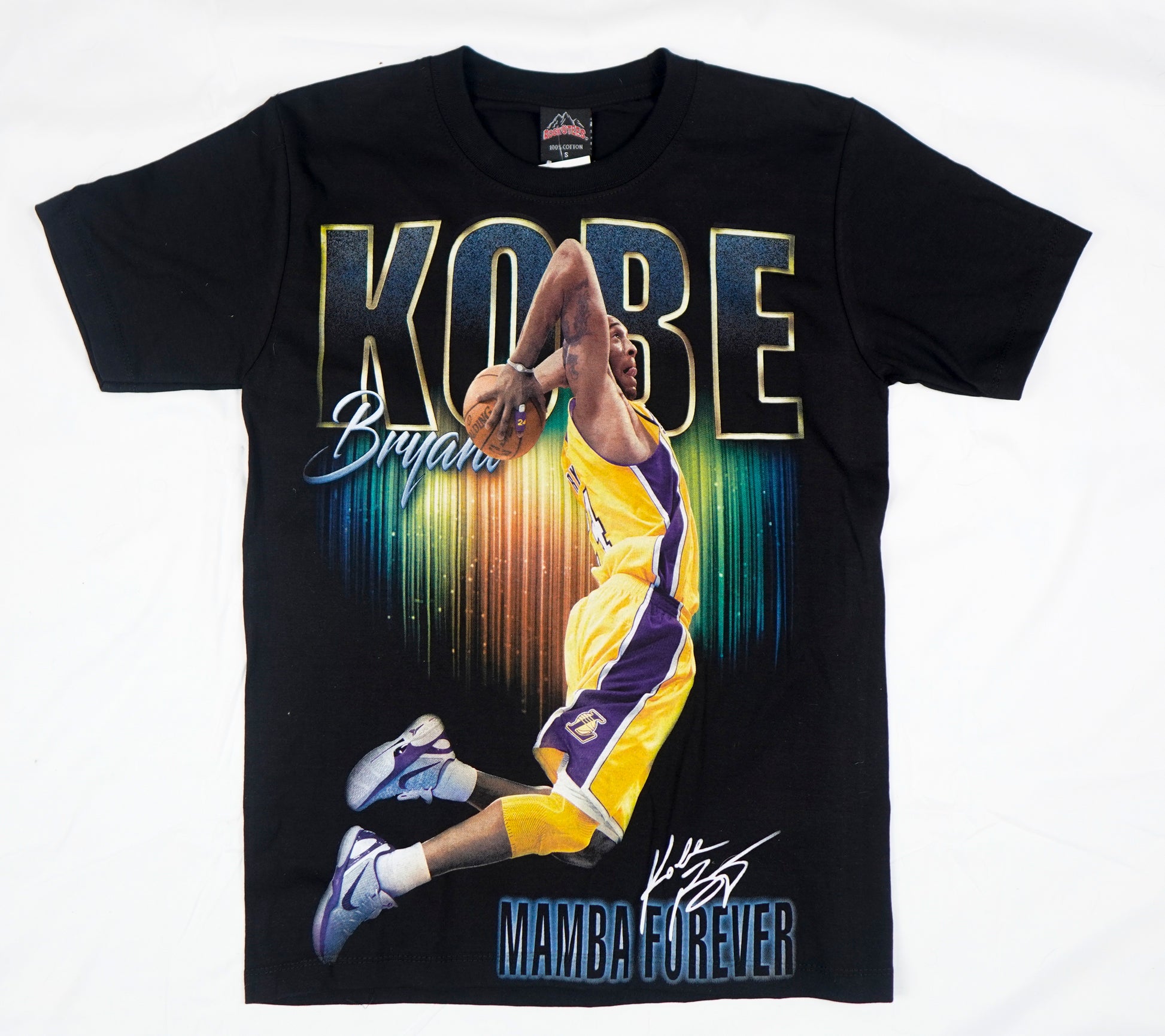 Pay tribute to the Black Mamba with this striking Kobe Bryant "Mamba Forever" shirt. Crafted from premium cotton, this shirt features a dynamic graphic of Kobe in action, captured mid-dunk in his iconic Los Angeles Lakers uniform. The vibrant background and bold "Mamba Forever" text make this shirt a must-have for any Kobe fan. Plus, it glows in the dark, ensuring that Kobe’s legacy shines bright even at night.