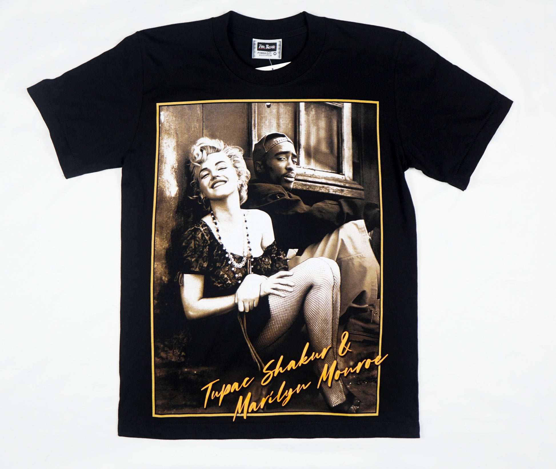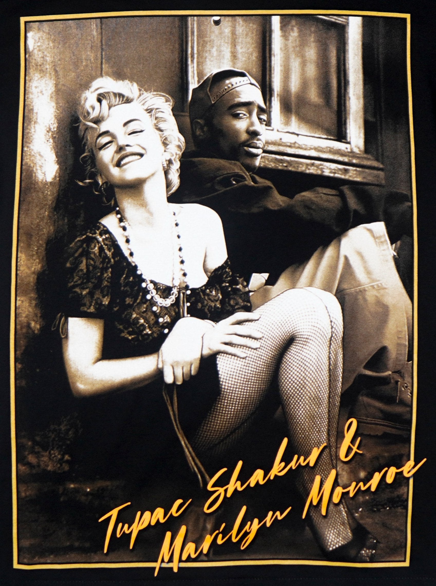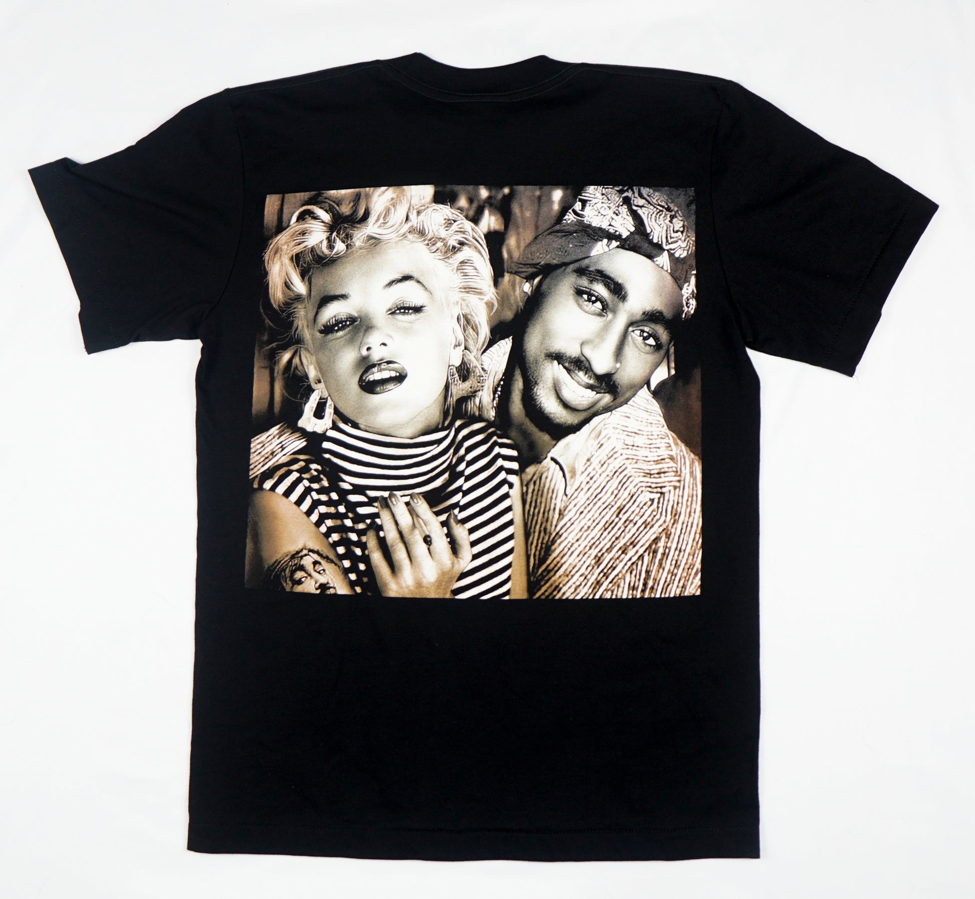 - Design: Sepia-toned print featuring Tupac Shakur and Marilyn Monroe in a stunning, imagined collaboration