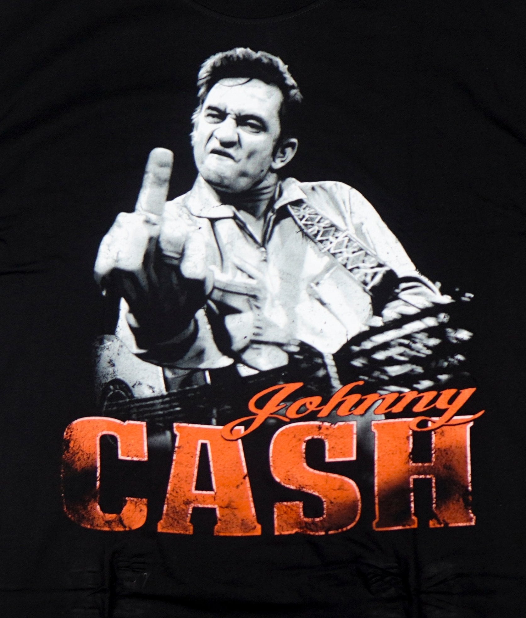 Embrace the rebellious spirit of the Man in Black with this Johnny Cash 'The Salute' graphic t-shirt, hoodie, or crewneck. Featuring the iconic image of Johnny giving his famous one-finger salute, this design epitomizes the defiance and rawness that characterized his music and personality.