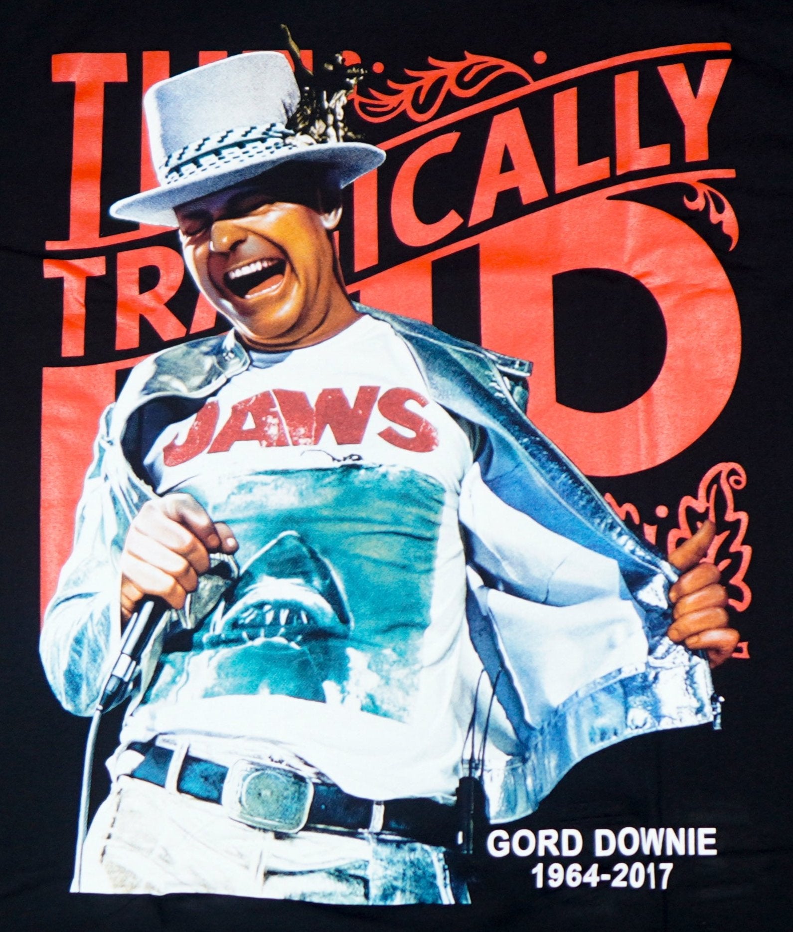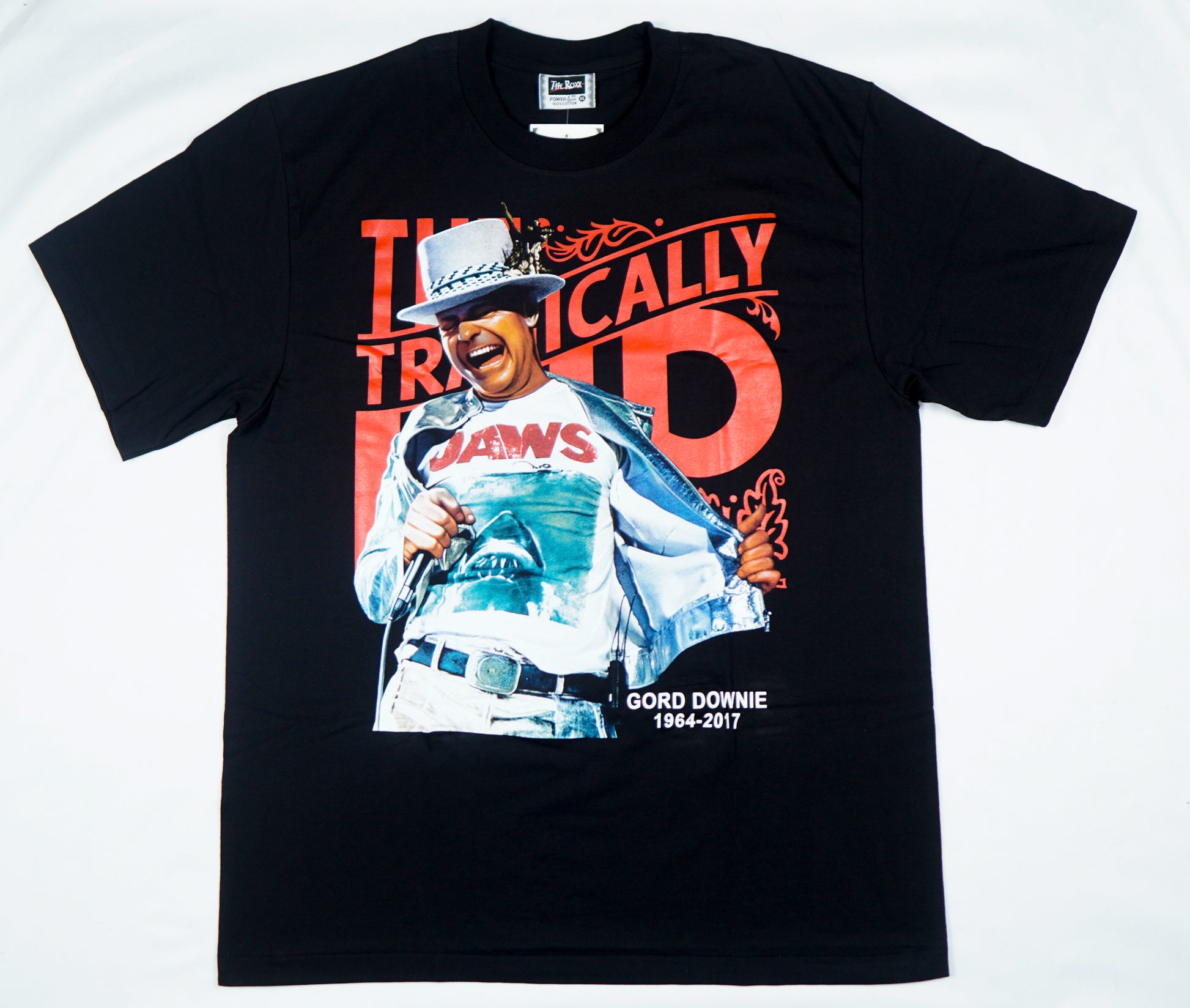 Celebrate the legendary Gord Downie with our 'Tragically Hip' t-shirt, hoodie, or crewneck. Featuring the exuberant Gord Downie in mid-performance, this apparel is a tribute to his artistry and his unforgettable impact on music. The bold "Tragically Hip" text and vibrant imagery pay homage to a true music icon.