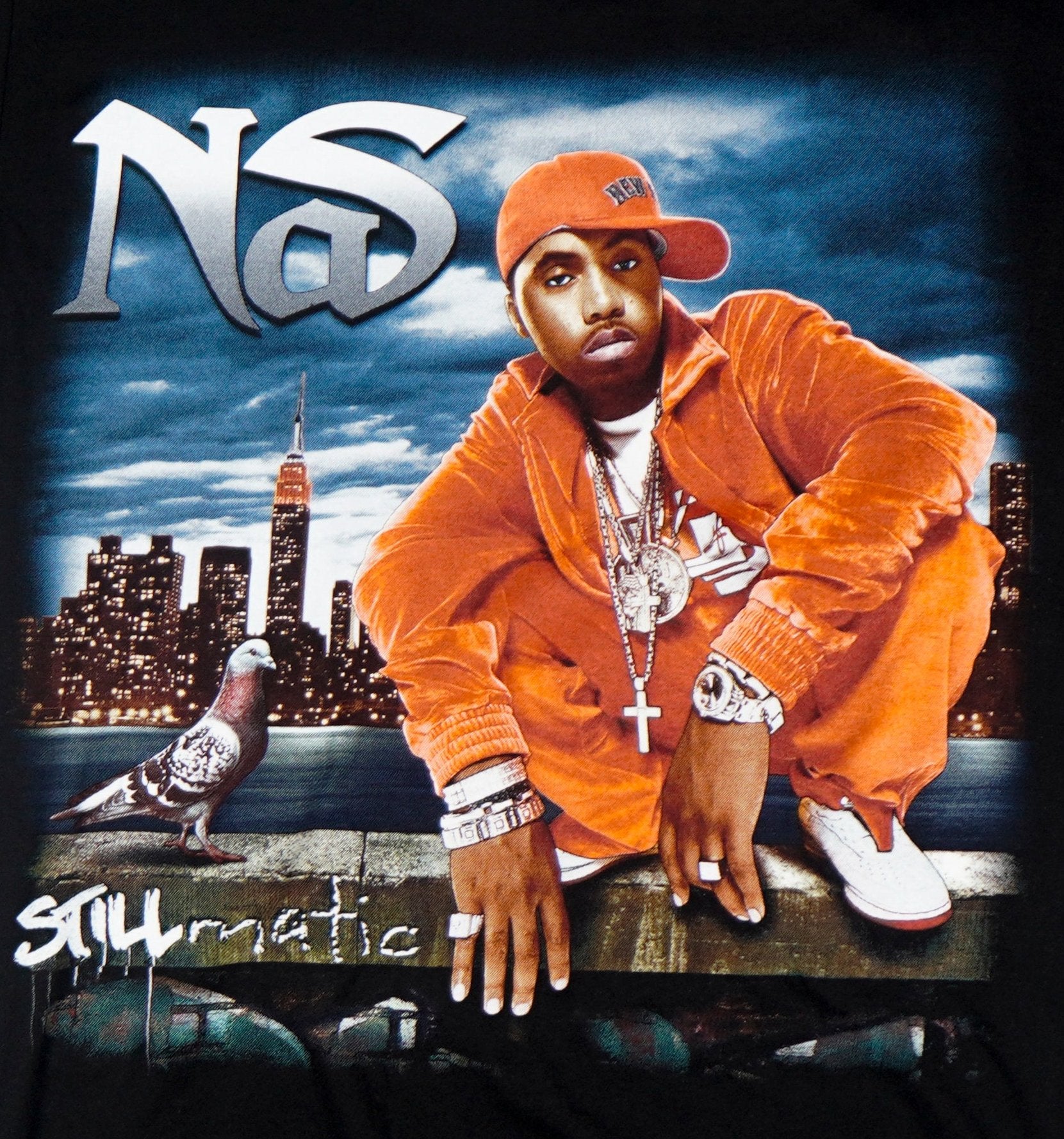 - Design: Bold print of Nas with the "Illmatic" album title and NYC backdrop, emphasizing his profound impact on music