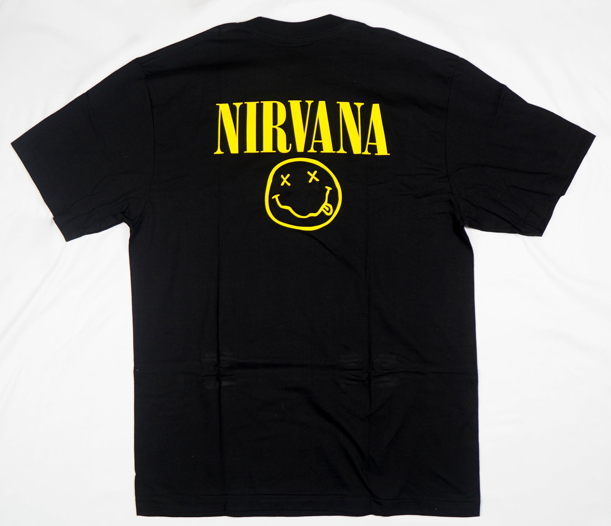 - Design: Prominent Nirvana smiley face logo with the band's name above in matching yellow