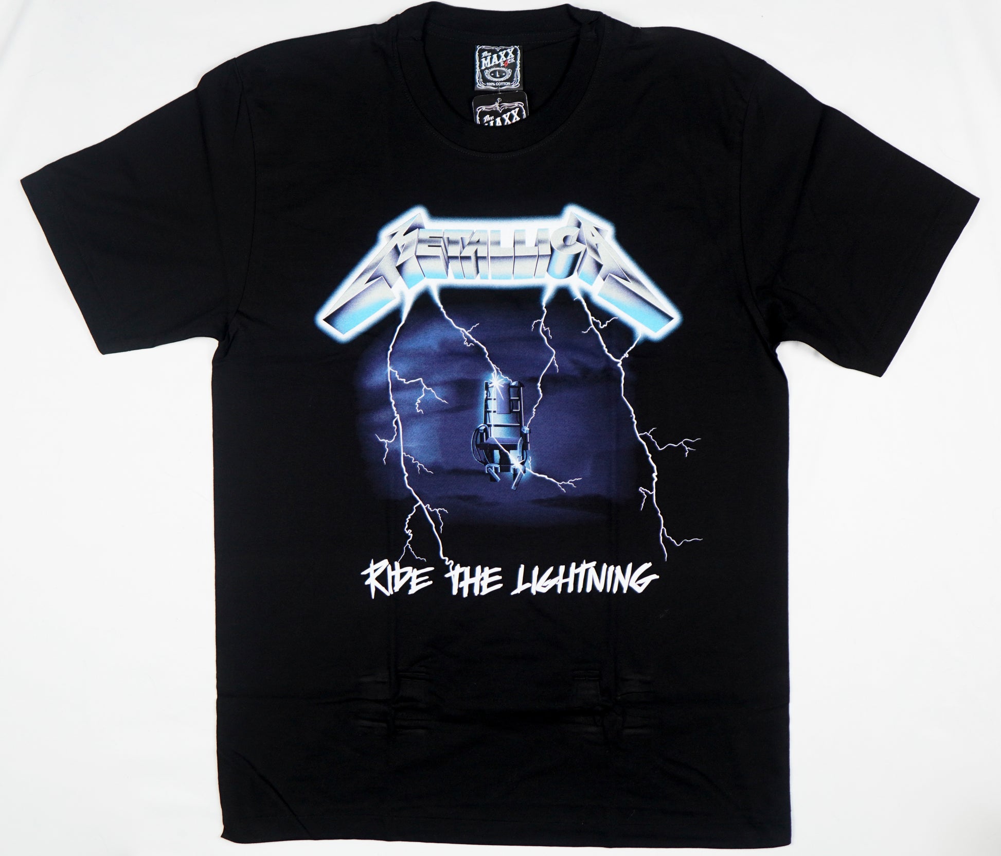 Embrace the electrifying intensity of Metallica with our "Ride the Lightning" album shirt. This design features the album's striking cover art—a haunting image of an electric chair amidst a stormy backdrop, framed by the band's iconic logo. Made from 100% cotton, this shirt is not only a tribute to one of Metallica's most celebrated albums but also a comfortable wear for any metal fan.